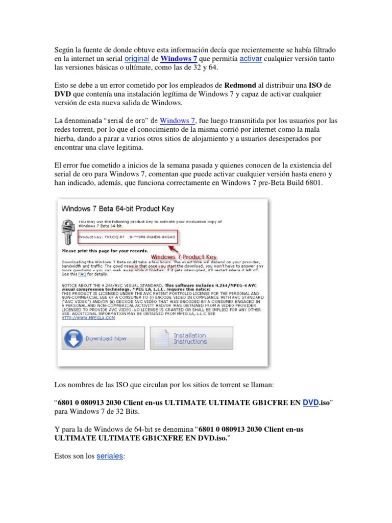 Serial De Oro Original Para Windows 7 Windows 7 Computacion
