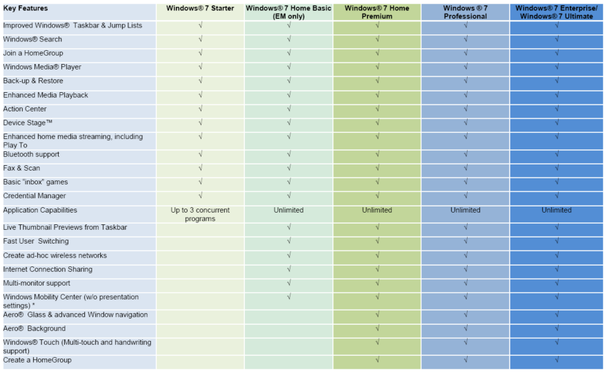 Windows 7 Windows 7 Premium Vs Professional Vs Ultimate